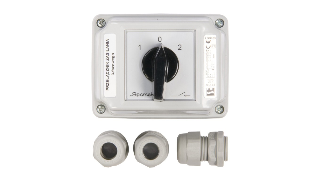 Łącznik krzywkowy 1-0-2 3P 25A w obudowie ŁK25R-3.8380OB3