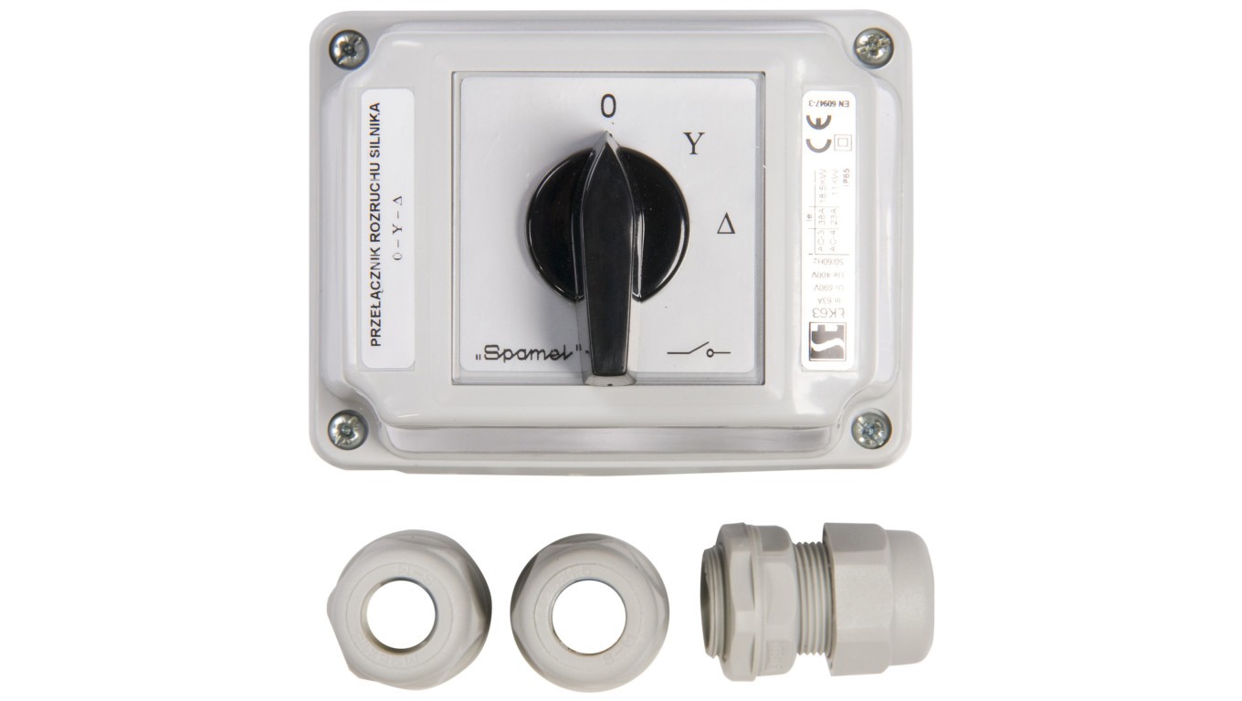 Łącznik krzywkowy gwiazda-trójkąt 3P 63A w obudowie ŁK63-4.831OB3