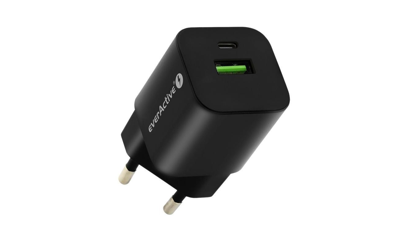 Ładowarka sieciowa everActive GaN SC-390QB z gniazdem USB QC3.0 oraz USB-C PD PPS 30W