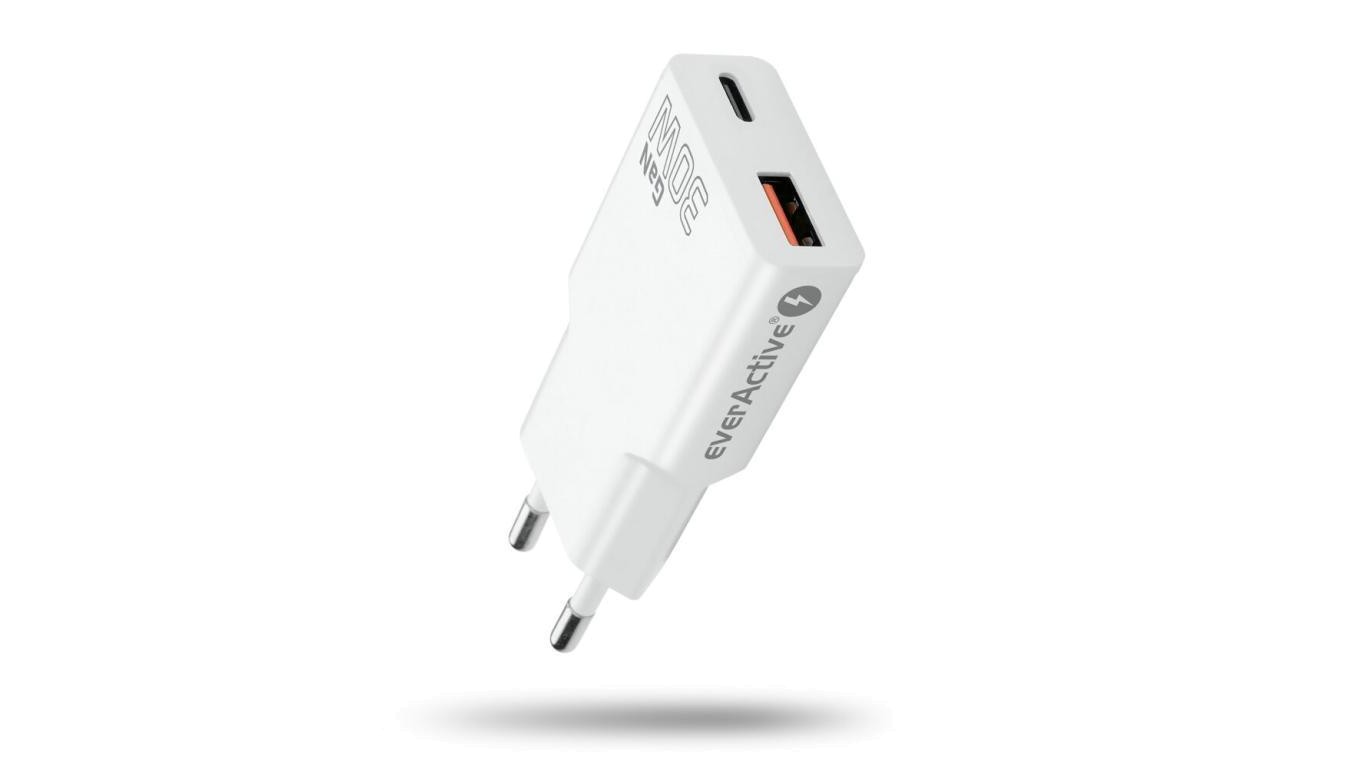 Ładowarka sieciowa everActive GaN SUPER SLIM SC-380Q z gniazdem USB QC3.0 oraz USB-C PD 30W
