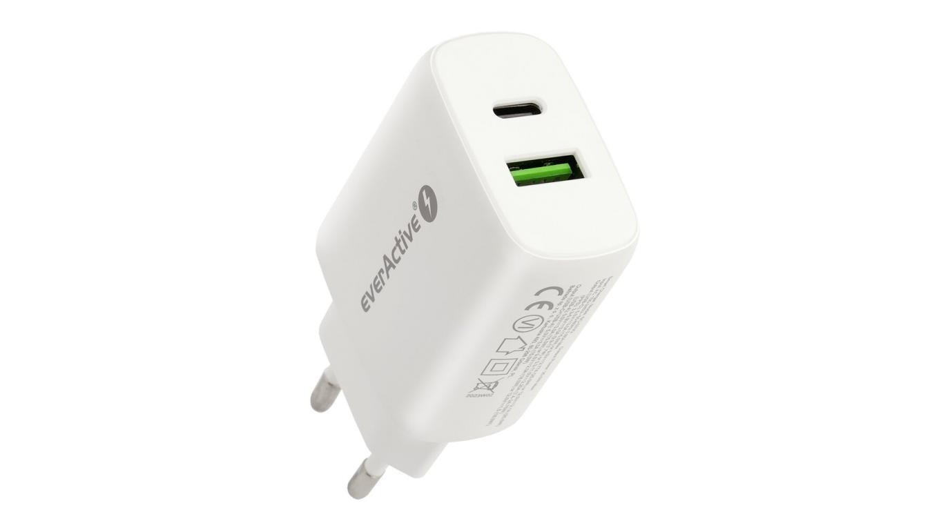 Ładowarka sieciowa everActive SC-370Q z gniazdem USB QC3.0 oraz USB-C PD PPS 25W