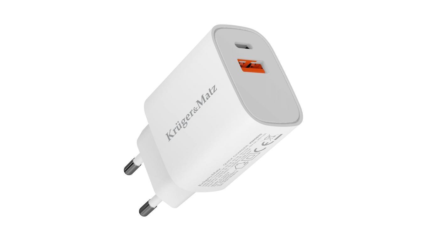 Ładowarka sieciowa GaN 1x USB typ-A Quick Charge 3.0 + 1x USB typ-C Power Delivery 3.0 30W