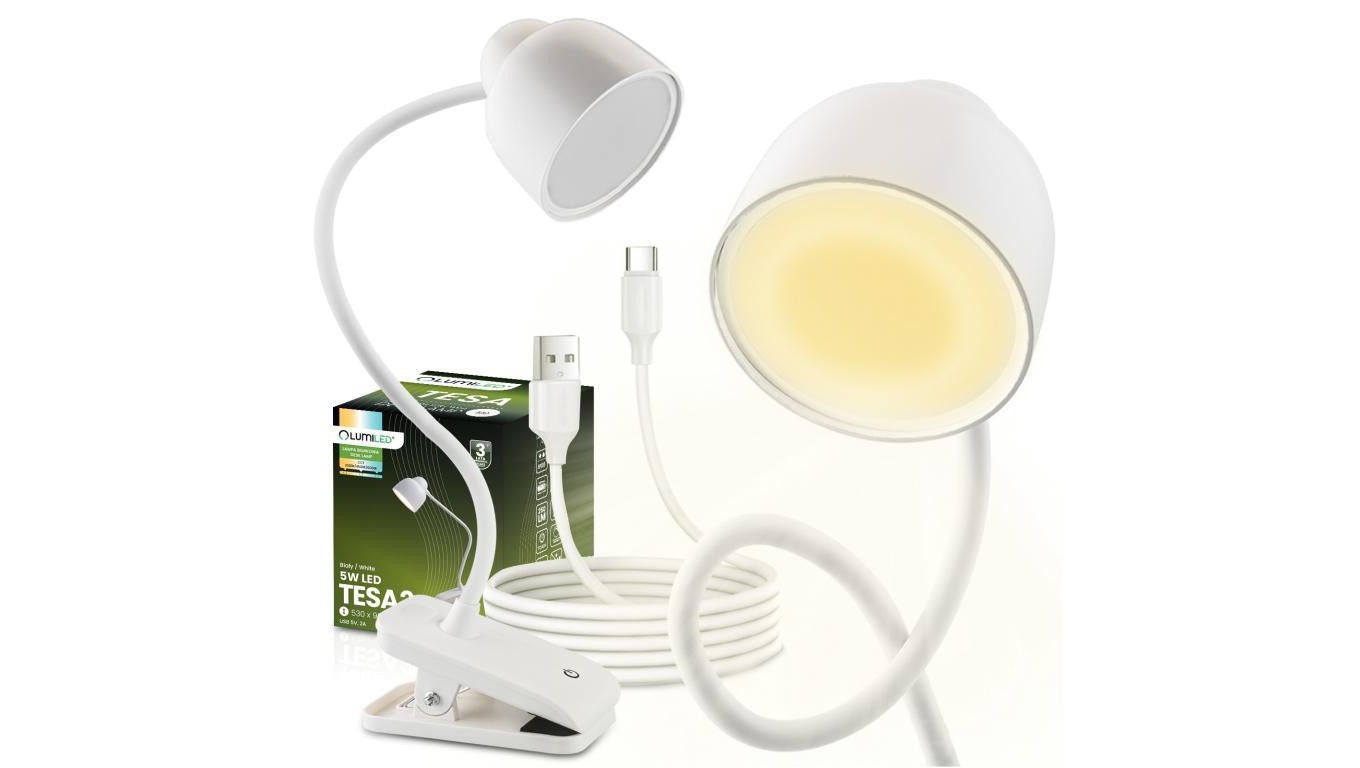 Lampka Biurkowa LED 5W CCT Kreślarska Stołowa Szkolna TESA 2 Biała LUMILED