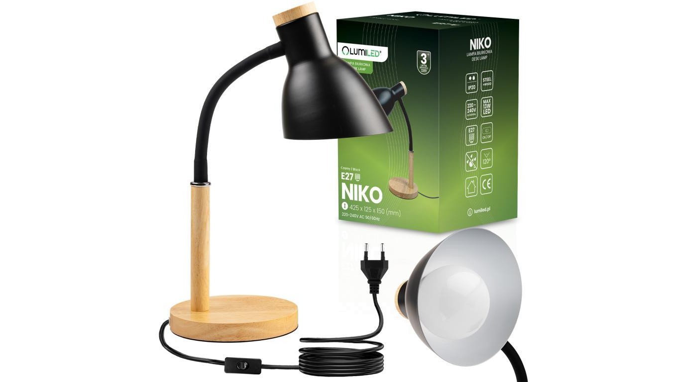 Lampka Biurkowa Szkolna Kreślarska Stołowa Dekoracyjna E27 NIKO Czarna Lumiled