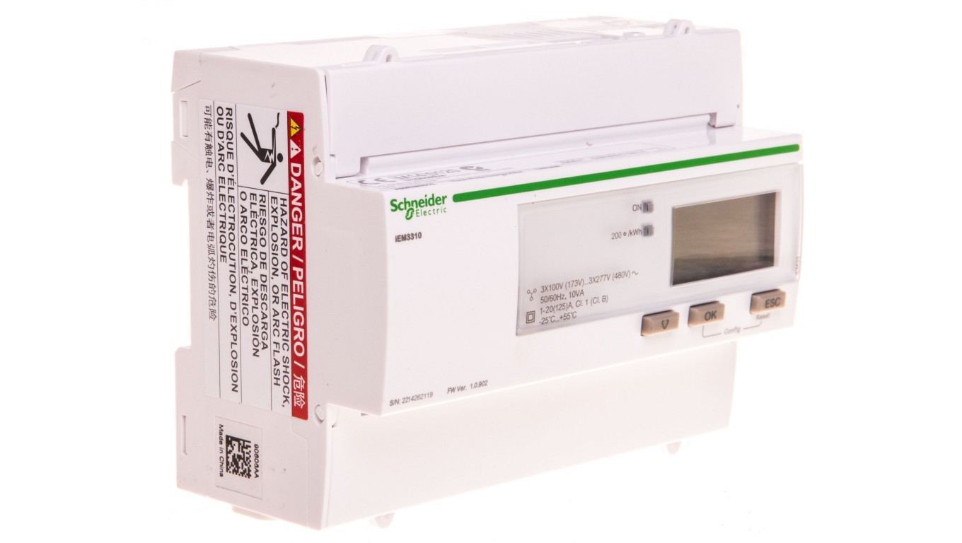 Licznik energii elektrycznej 1/3-fazowy 125A 100-277/173-480V kl.1/B MID taryfowy cyfrowy modułowy A9MEM3310