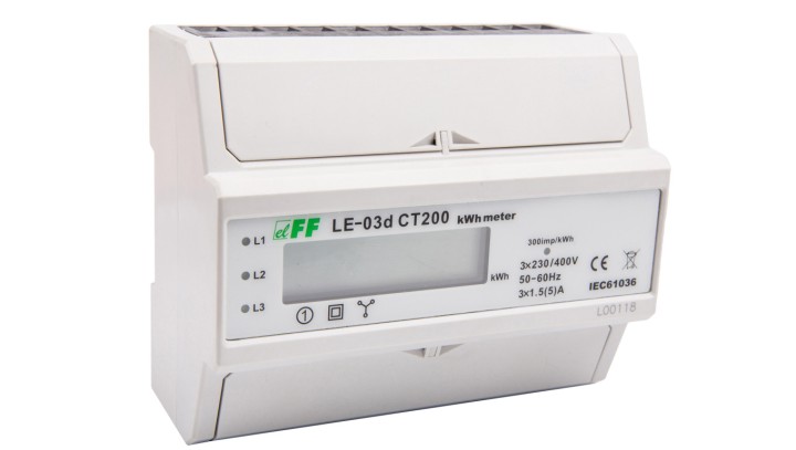 Licznik energii elektrycznej 3-fazowy 5A 230/400V do współpracy z przekładnikiem 200/5A wyświetlacz LCD LE03D-CT200