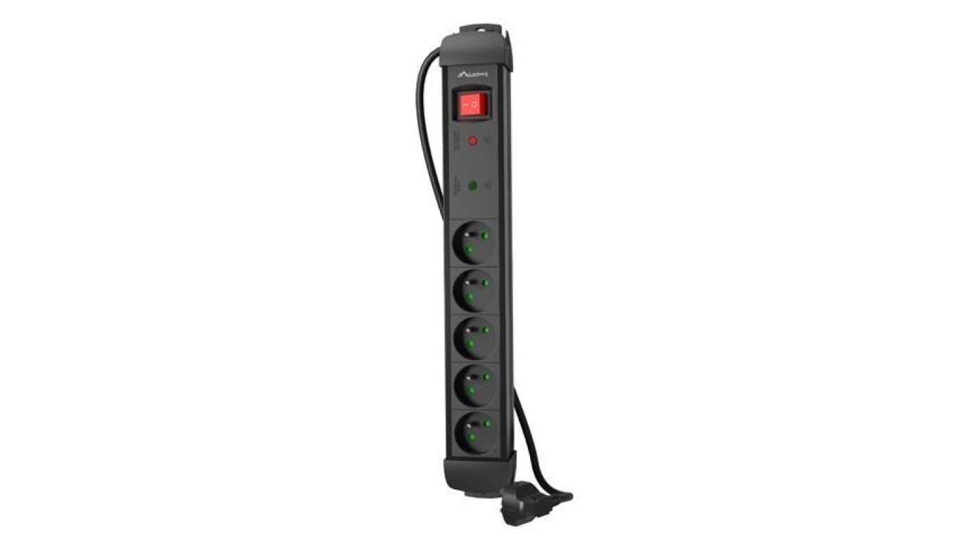 Listwa zasilająca antyprzepięciowa LANBERG na 5 gniazd 2P+Z z wyłącznikiem czarna 5m
