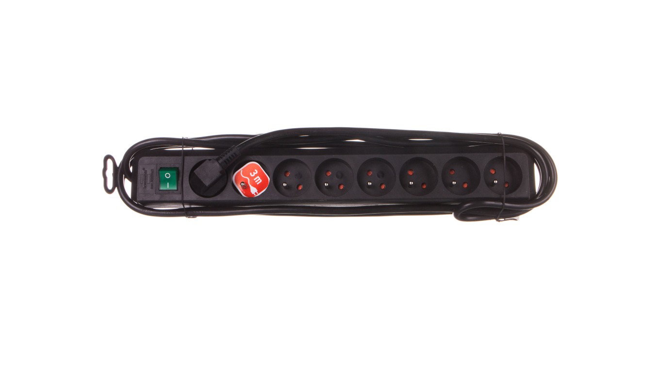 Listwa zasilajaca Eco-Line 3m /z wyłącznikiem/ 8x230V czarna H05VV-F 3G1,5 1159301018