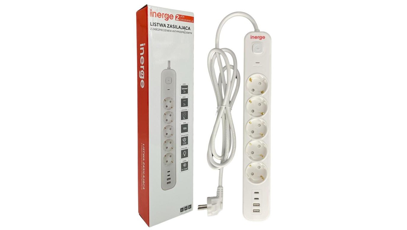 Listwa zasilająca INERGE 5-gniazdowa 2m PSS-0531-02-W