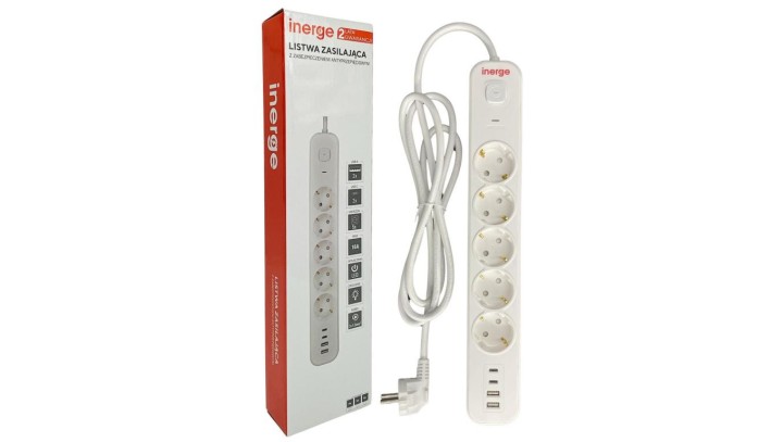 Listwa zasilająca INERGE 5-gniazdowa 3m PSS-0531-03-W