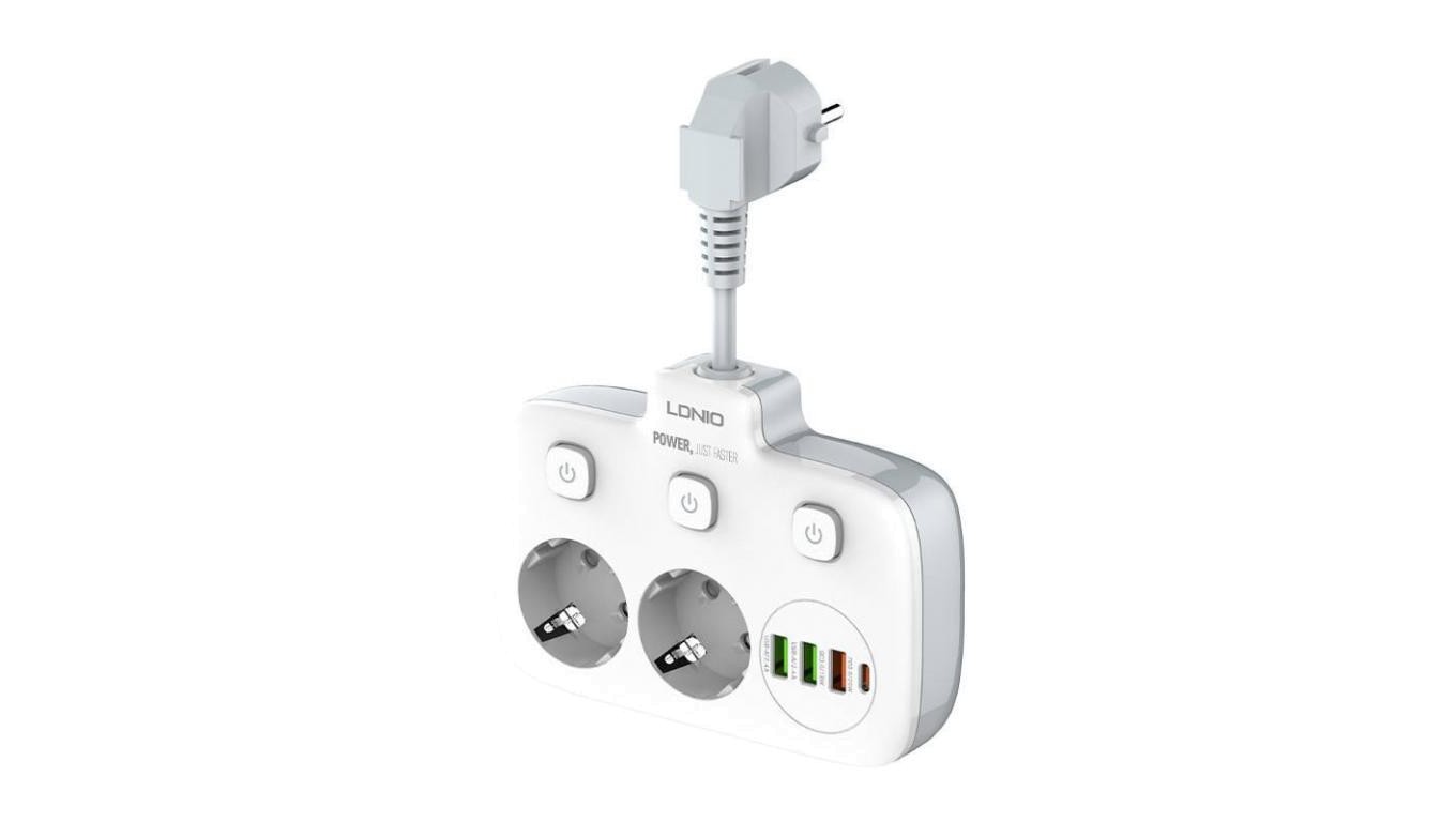Listwa zasilająca z 2 gniazdami AC, 3x USB, USB-C, LDNIO SE2435, 2500W (biała)
