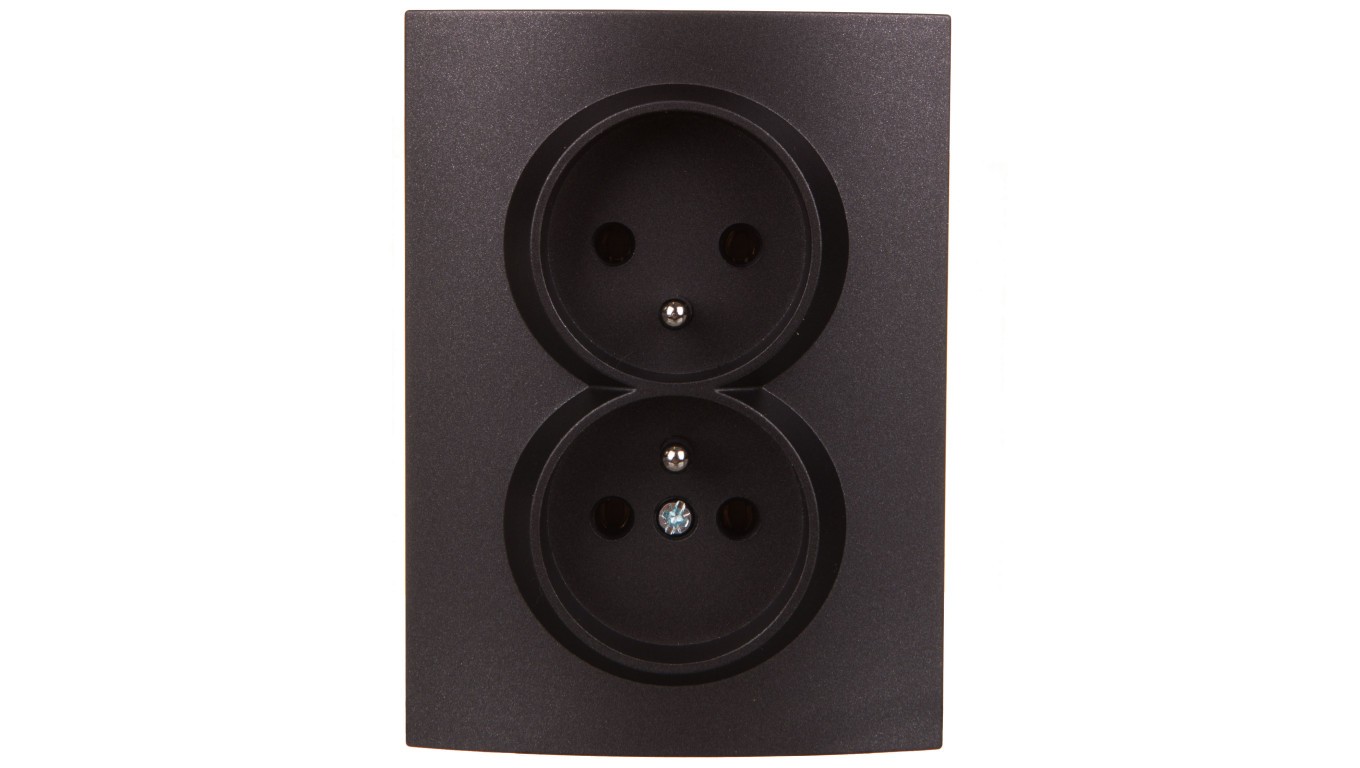 LOGI Gniazdo podwójne kompletne śrubowy Grafit 16A 250V 021261141 25271