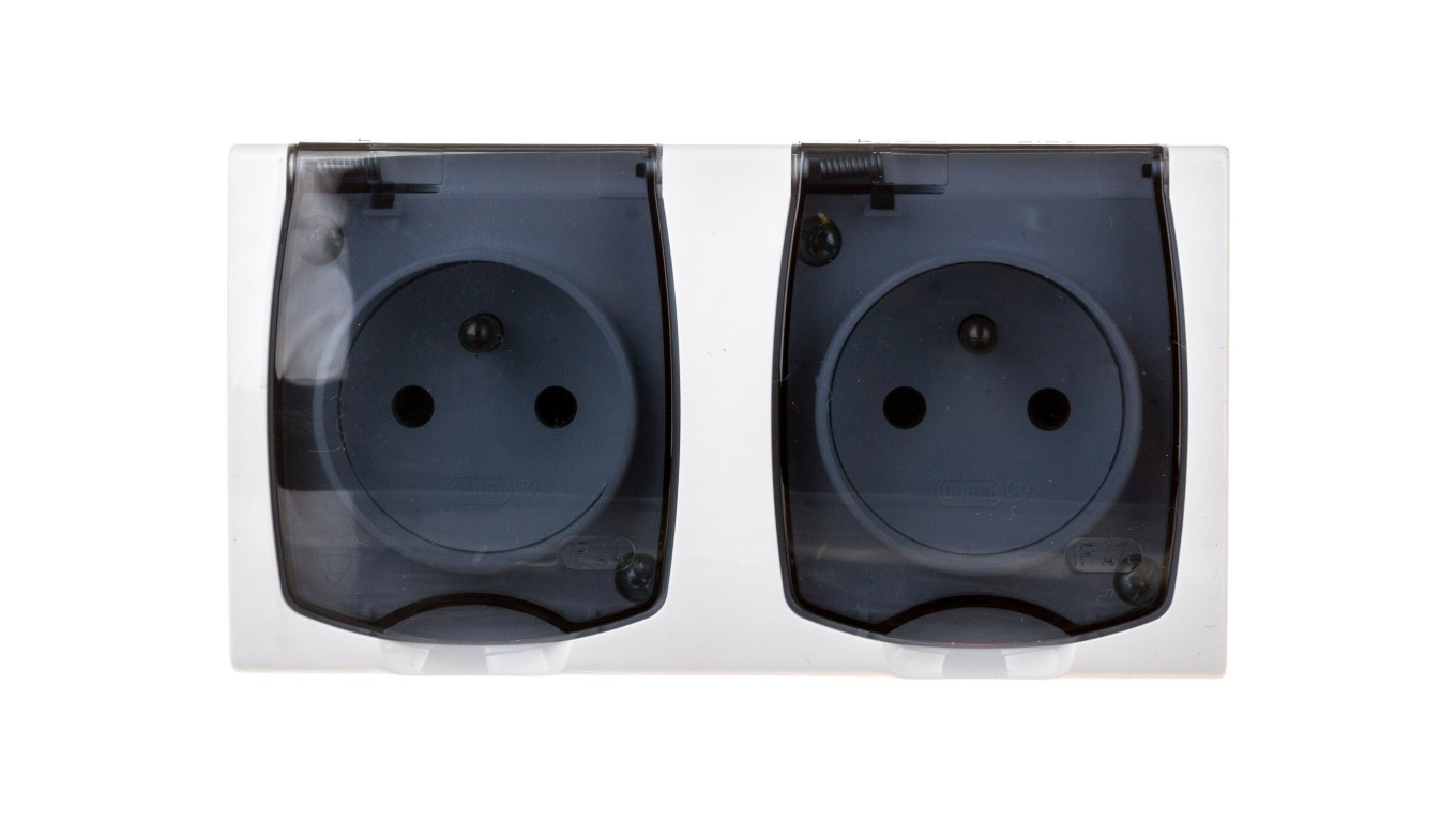 MADERA Gniazdo hermetyczne podwójne z/u IP44 klapka przezroczysta białe GNH-2NZ/00/d