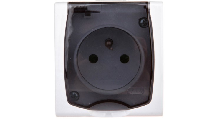 MADERA Gniazdo hermetyczne pojedyncze z/u IP44 z przesłonami klapka przezroczysta białe GNH-1NZP/00/d
