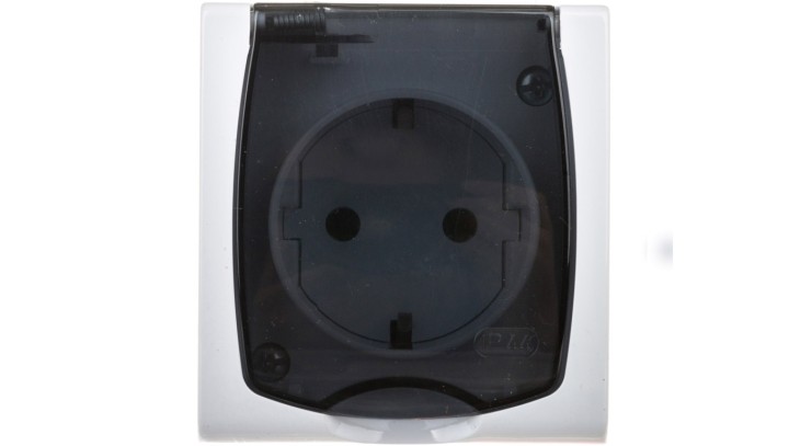 MADERA Gniazdo hermetyczne pojedyncze z/u Schuko IP44 klapka przezroczysta biała GNH-1NS/00/d