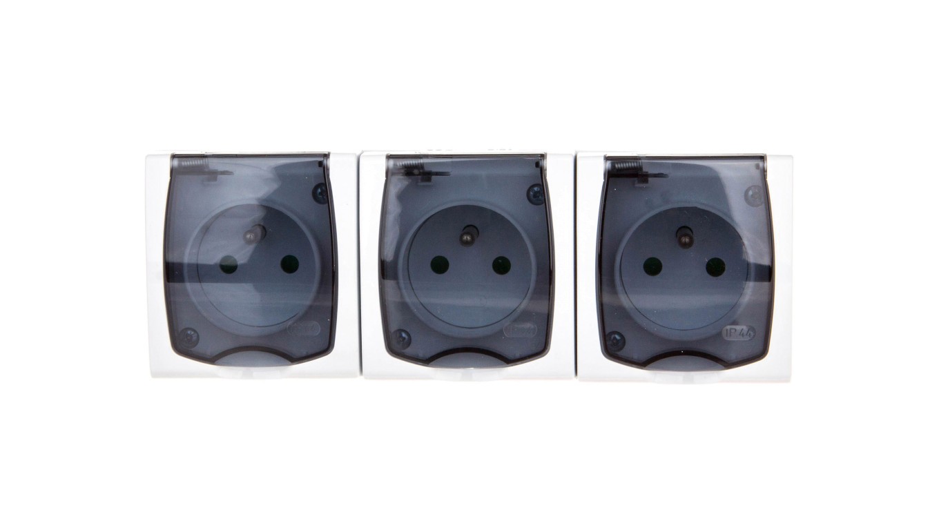 MADERA Gniazdo hermetyczne potrójne z/u IP44 z przesłonami klapka przezroczysta białe GNH-3NZP/00/d