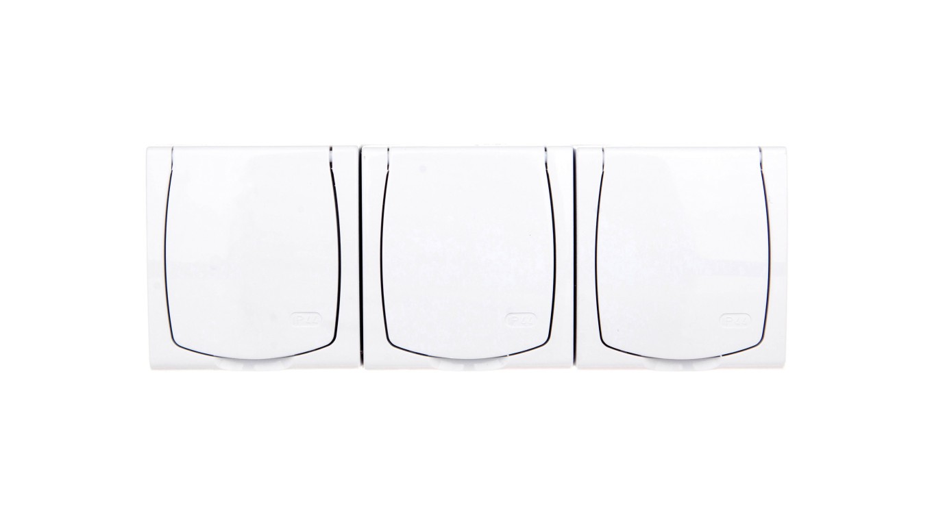MADERA Gniazdo hermetyczne potrójne z/u Schuko IP44 z przesłonami klapka biała GNH-3NSP/00/w