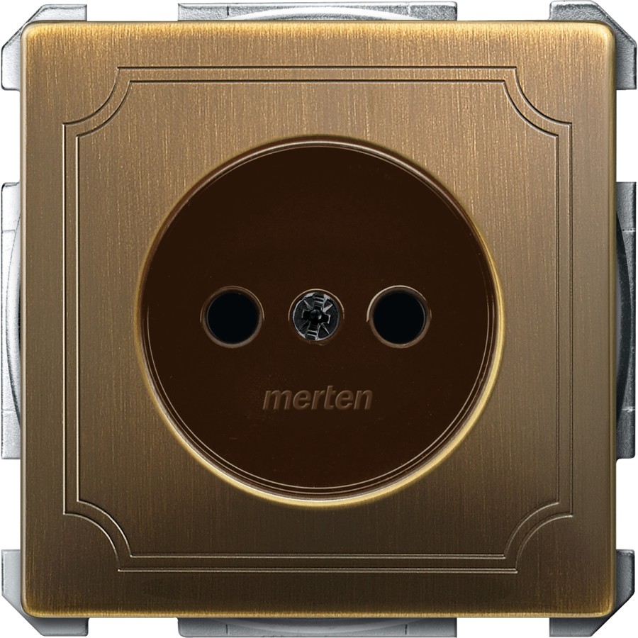 Merten System D Gniazdo pojedyncze b/u z przesłonami mosiądz antyk MTN2000-4143