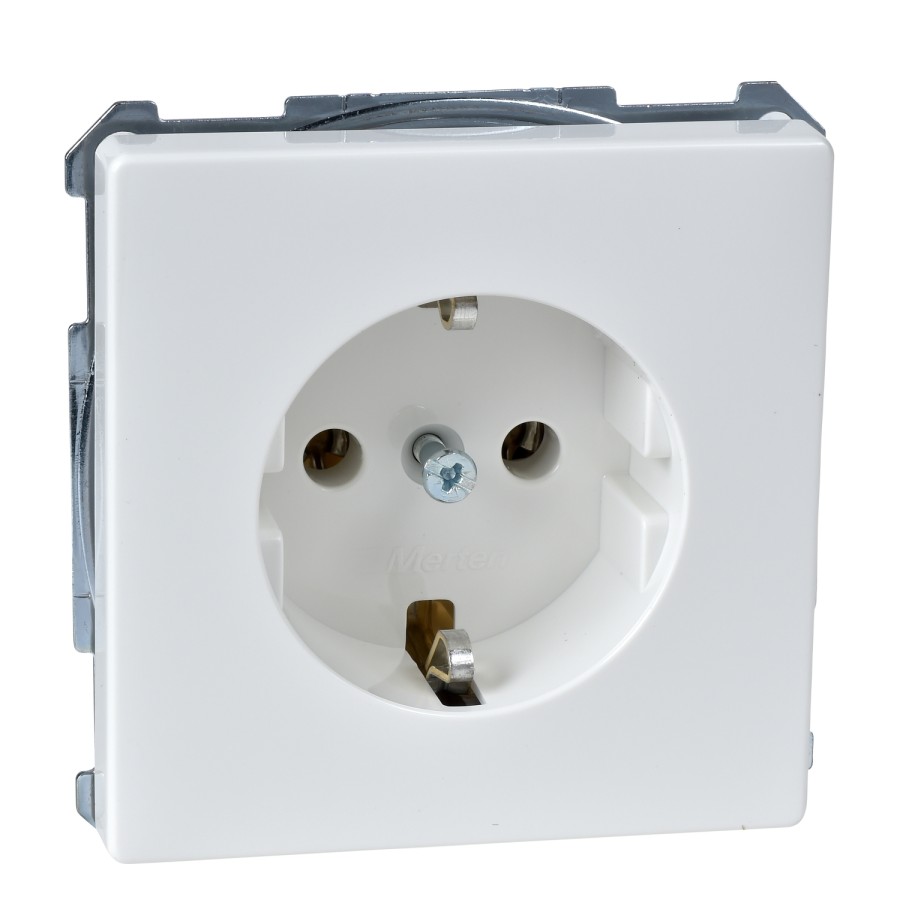 Merten System D Gniazdo pojedyncze SCHUKO z przesłonami biały polarny MTN2401-4019