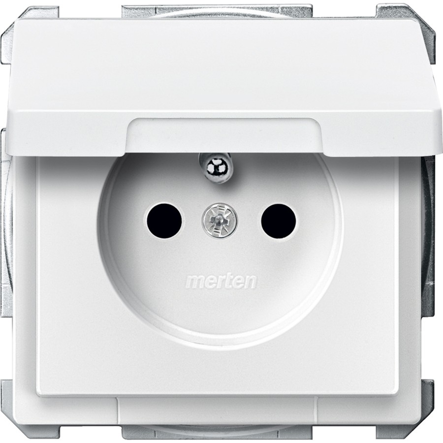 Merten System D Gniazdo pojedyncze z/u i klapką z przesłonami biały polarny MTN2510-4019