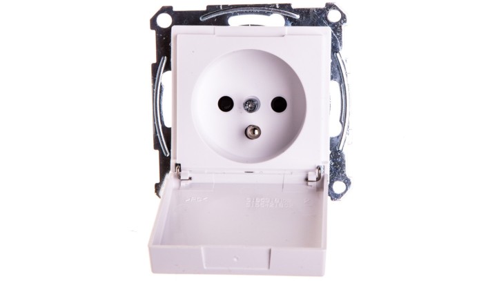 Merten System M Gniazdo pojedyncze z/u 16A IP20 z przesłonami i klapką białe MTN2610-0325