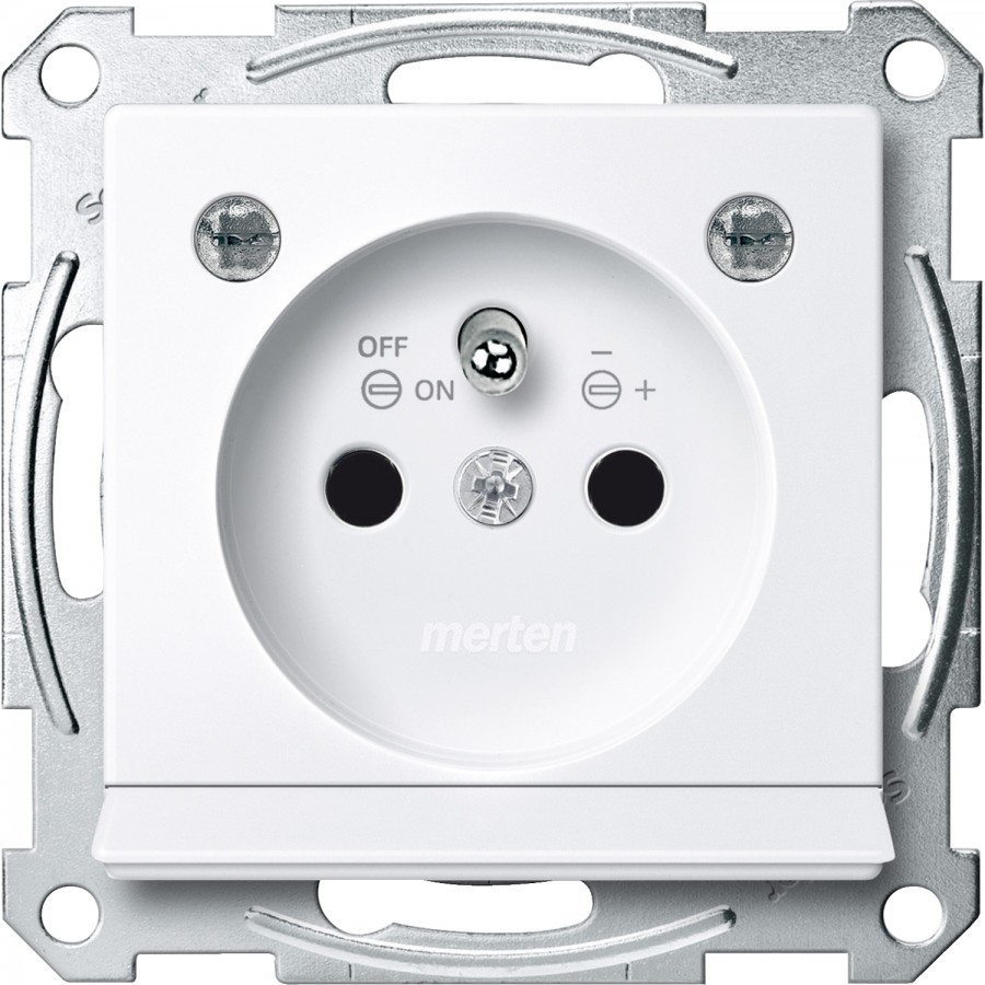 Merten System M Gniazdo pojedyncze z/u z przesłonami i czujnikiem zmierzchowym oraz podświetleniem LED biały active MTN2504-0325