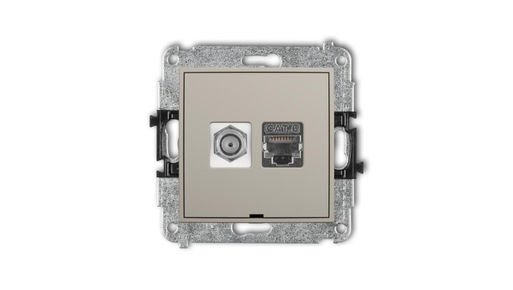 MINI Mechanizm gniazda antenowego F (SAT) + gniazda komp. 1xRJ45, kat. 6 ekranowany, 8-stykowy, bez opisu taupe 60MGFKBO-5