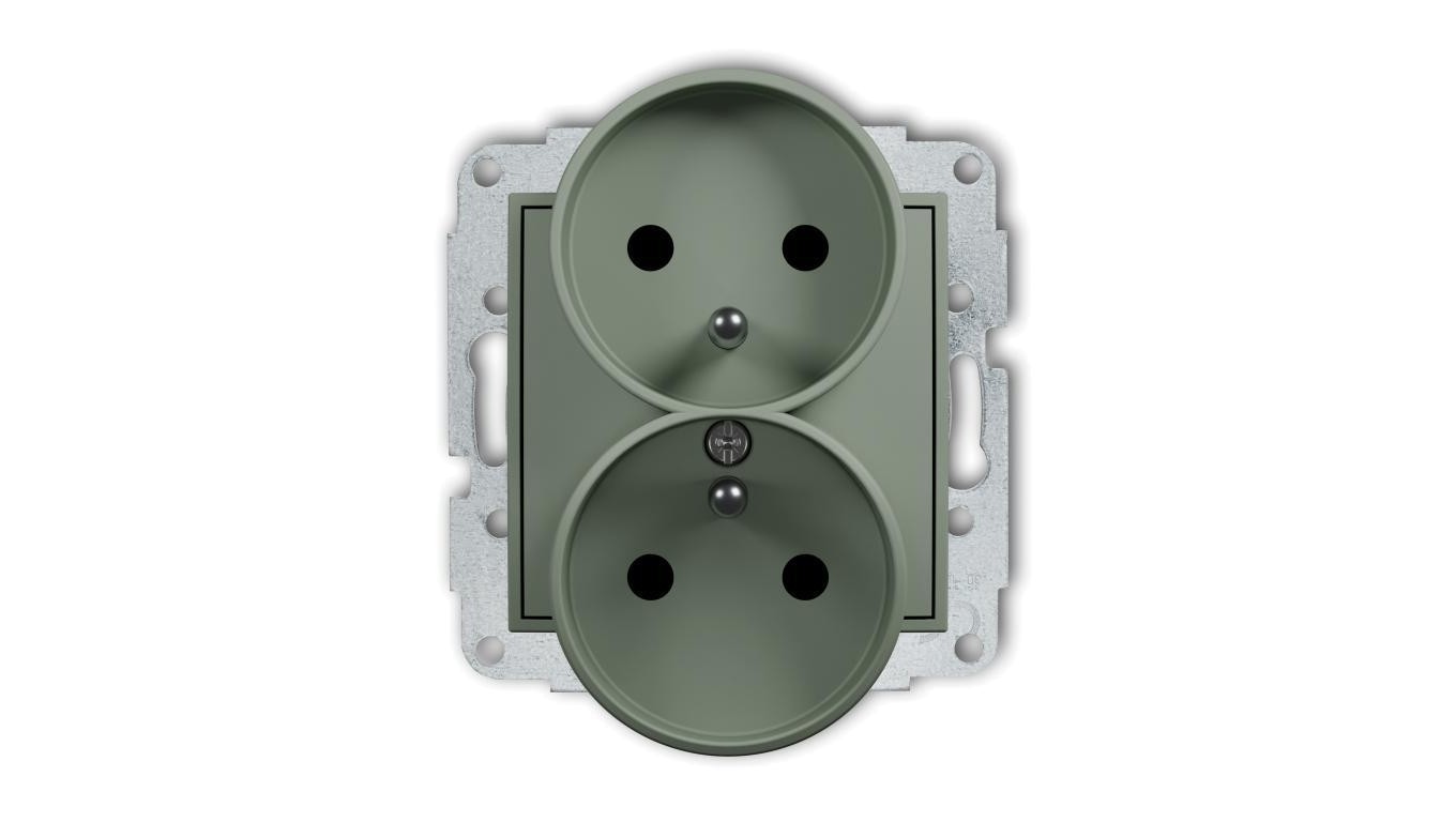 MINI Mechanizm gniazda podwójnego do ramki z uziemieniem 2x(2P+Z) (przesłony torów prądowych) szałwiowy 61MGPR-2zp