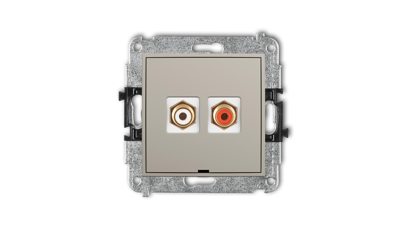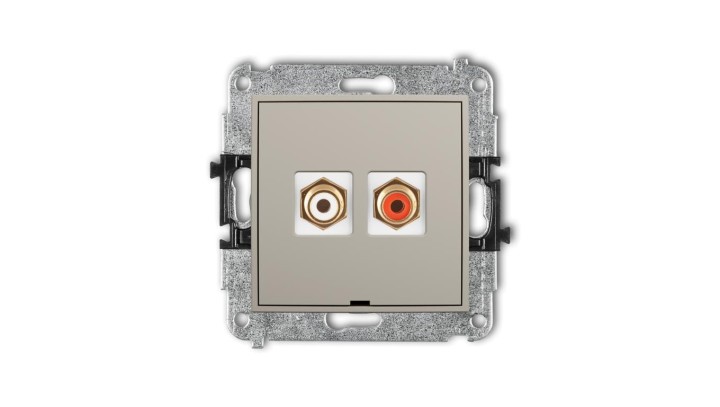 MINI Mechanizm gniazda podwójnego RCA, bez pola opisowego (typu cinch - biały i czerwony, pozłacany) taupe 60MGRCABO-2