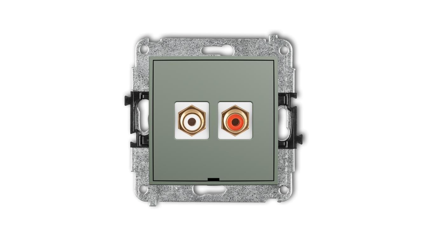 MINI Mechanizm gniazda podwójnego RCA, bez pola opisowego (typu cinch - biały i czerwony, pozłacany) szałwiowy 61MGRCABO-2
