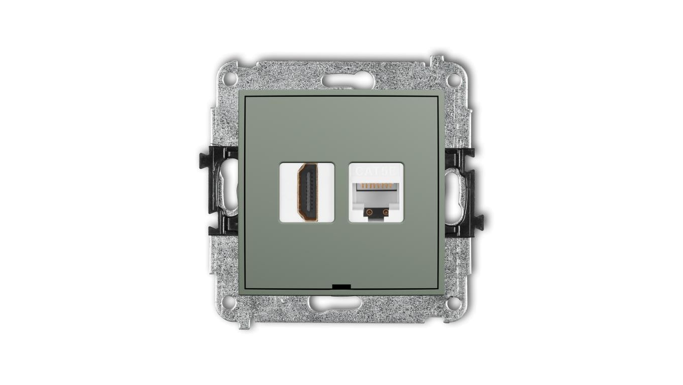 MINI Mechanizm gniazda pojedynczego HDMI 2.0, 4K + gniazda komp. poj. 1xRJ45, kat. 5e, 8-stykowy, bez opisu szałwiowy 61MGHKBO