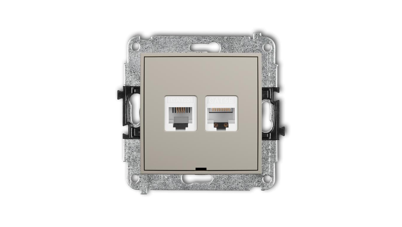 MINI Mechanizm gniazda telefonicznego 1xRJ11 + komp. poj. 1xRJ45, kat. 5e, 8-stykowy, beznarzędziowe, bez opisu taupe 60MGTKBO