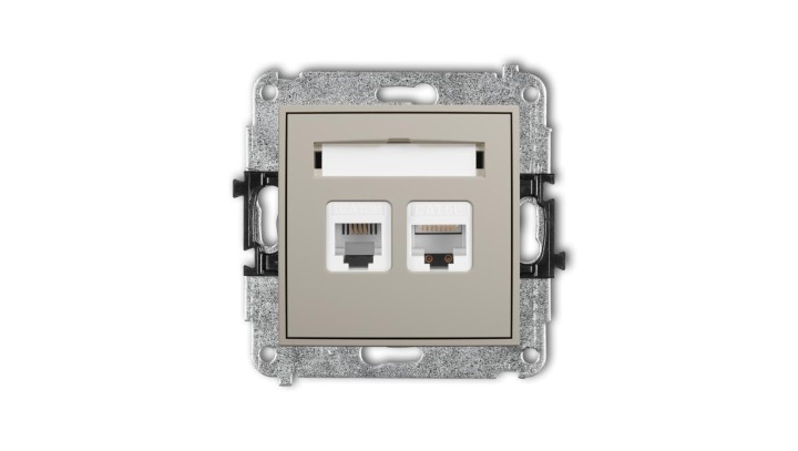 MINI Mechanizm gniazda telefonicznego poj. 1xRJ11 + komputerowego poj. 1xRJ45, kat. 5e, 8-stykowy, beznarzędziowe taupe 60MGTK