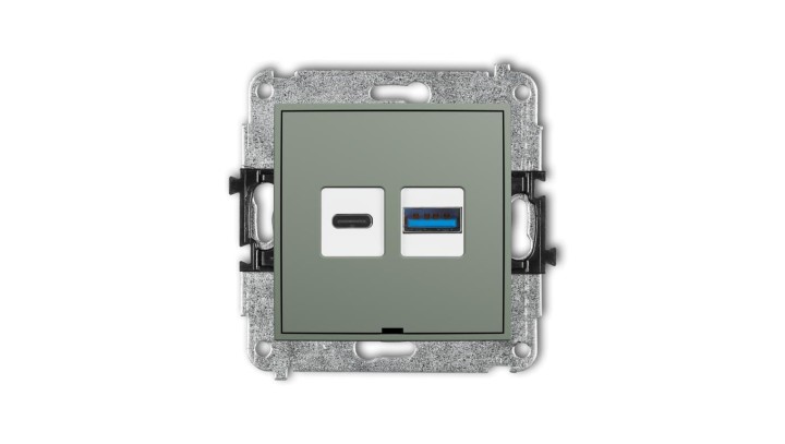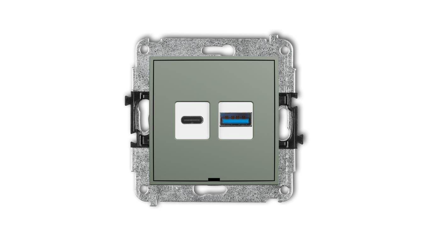 MINI Mechanizm ładowarki USB podwójnej USB C + USB A, 20W max., bez pola opisowego szałwiowy 61MCUSBBO-8