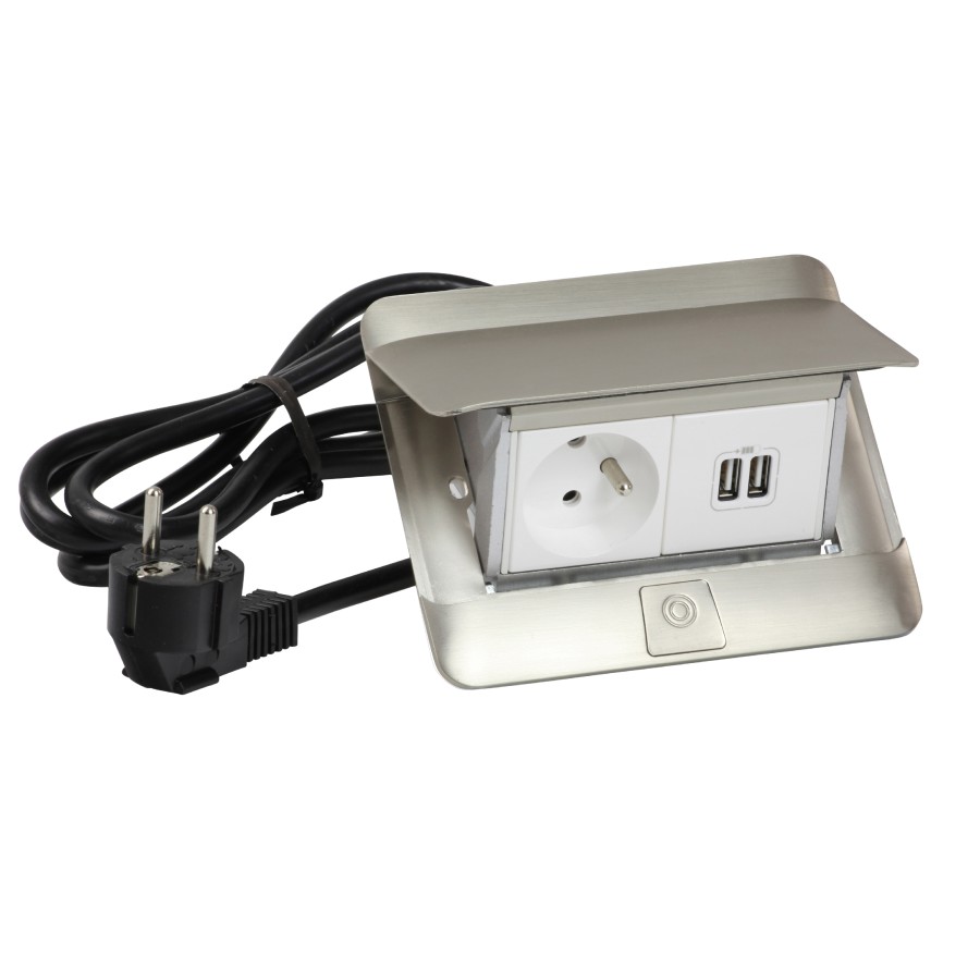 MINIPUSZKA POP-UP DO BLATÓW 4 MODUŁY STAL MATOWA WYPOSAŻONA 2P+Z + 2XUSB 654007