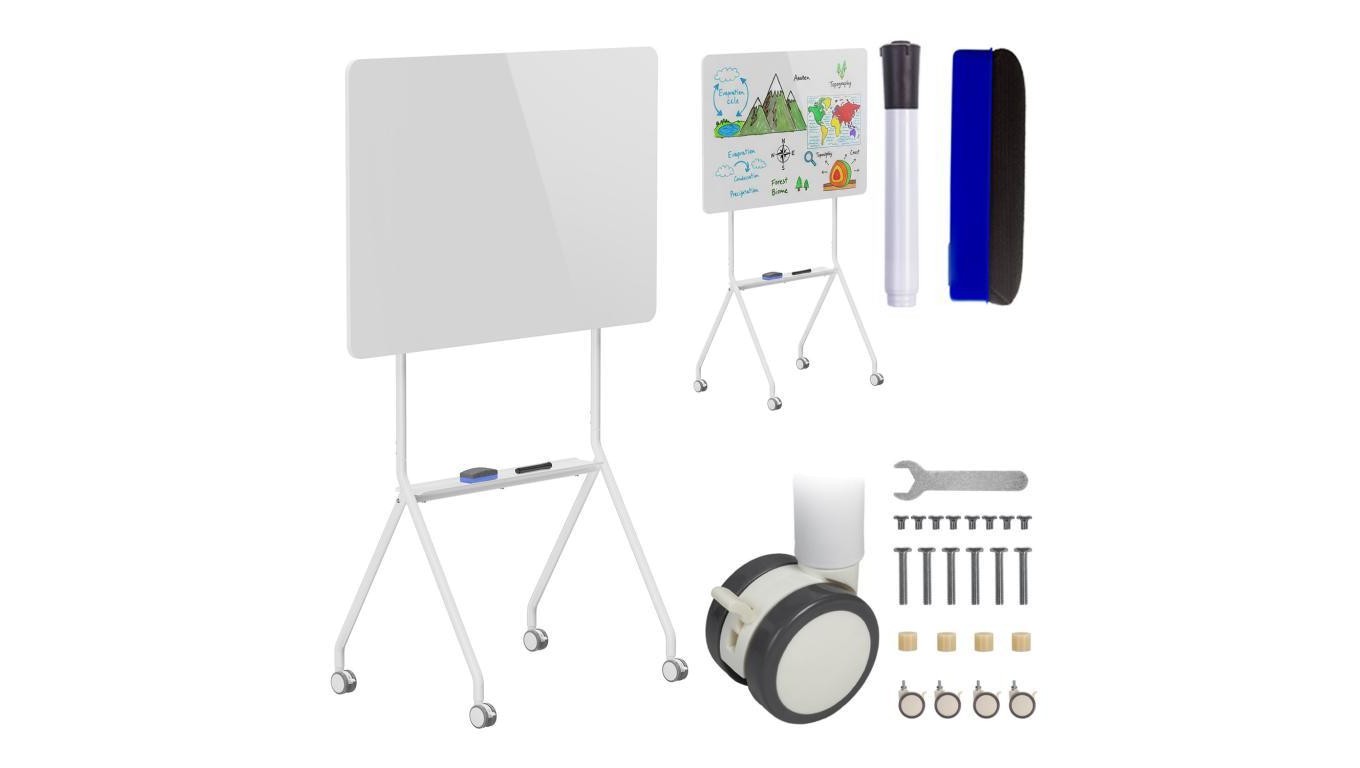 Mobilna tablica suchościeralna Ergo Office, orientacja pozioma, biała, jednostronna, z półką, wymiary tablicy 1190x790mm, ER-306