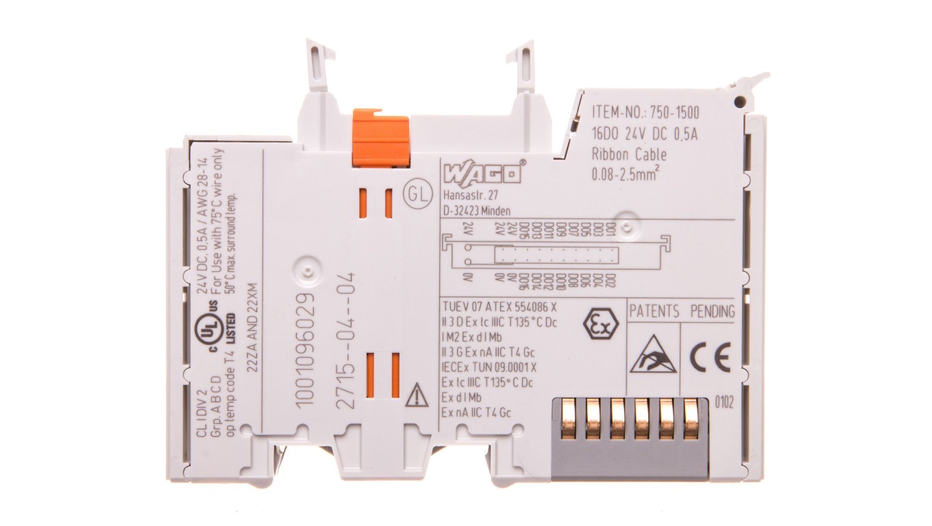 Moduł 16-kanałowy wyjść dwustanowych 24V DC 0,5A ze złączem do przewodu taśmowego 750-1500