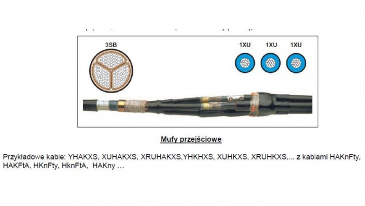 Mufa B przejściowa SN z złączkami śrubowymi MXSU-24B/1XU-3SB - TE Raychem - papier 70 lub 120 mm2