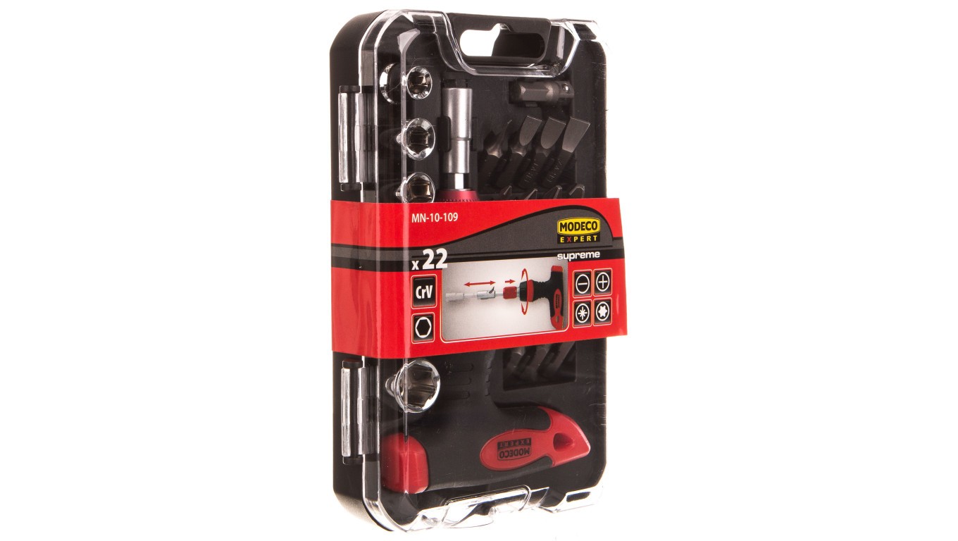 Multiwkrętak T z grzechotką, grotami i nasadkami /22 części/ MN-10-109