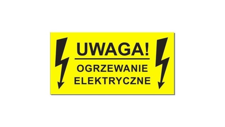 Naklejka ostrzegawcza UWAGA! OGRZEWANIE ELEKTRYCZNE 100x55mm