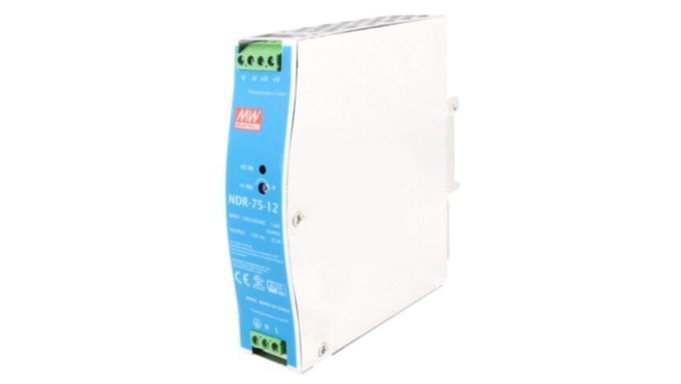 NDR-75-12 Zasilacz impulsowy, na szynę DIN, 75,6W, 12VDC, 6,3A, 90÷264VAC