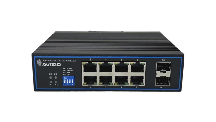 Niezarządzalny przełącznik przemysłowy (switch) 10xRJ45 - 8 portów RJ45 PoE+ 1Gb/s + 2 porty SFP Uplink 1Gb/s AVIZIO