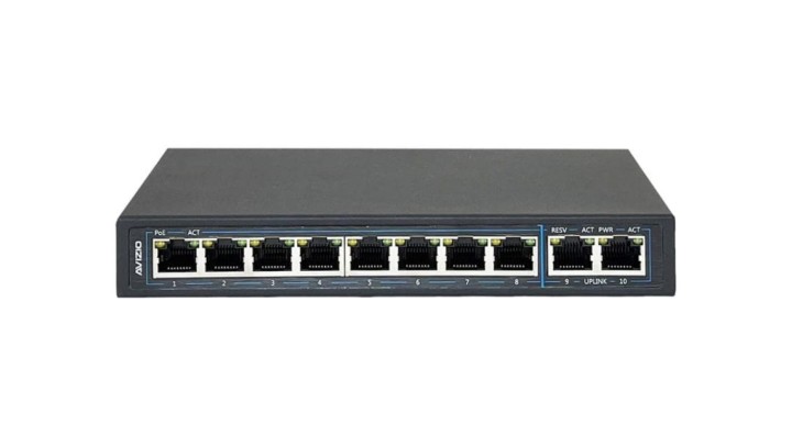 Niezarządzalny przełącznik (switch) 10xRJ45 - 8 portów RJ45 PoE+ 1Gb/s + 2 porty RJ45 Uplink 1Gb/s AVIZIO