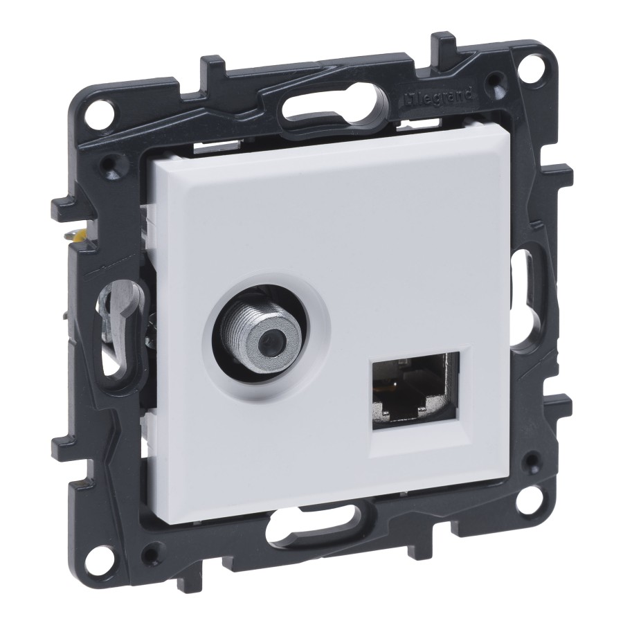 Niloe Step Gniazdo TV typu F końcowe do instalacji typu gwiazda 1,5dB + RJ 45 kat. 6 UTP biały 863177