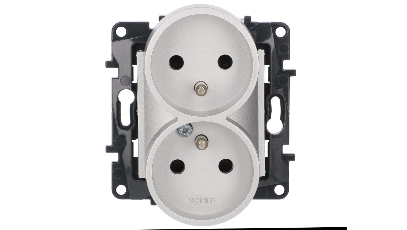 Niloe Step Gniazdo zasilające podwójne 2x2P+Z do ramek wielokrotnych, zaciski śrubowe, z przesłoną styków aluminium 863334