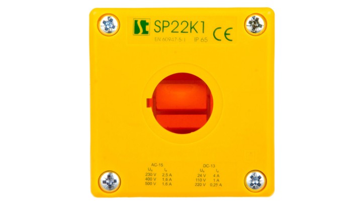 Obudowa kasety 1-otworowa 22mm żółta IP65 SP22-K1-00z