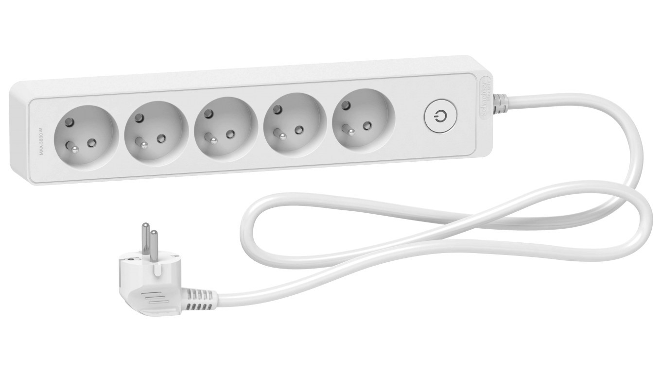 Odace Przedłużacz 5 gniazdowy z łącznikiem 1,5m biały ST9351W