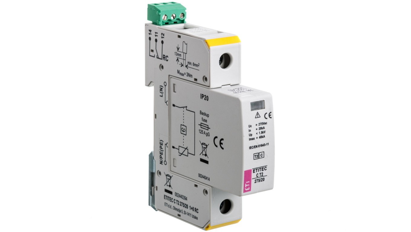 Ogranicznik przepięć C Typ 2 1P 20kA sygnalizacja ETITEC C T2 275/20 1+0 RC 002440394