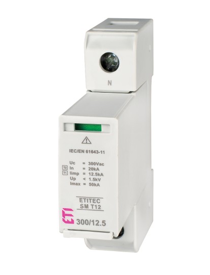 Ogranicznik przepięć T1, T2 (B, C) - bez prądu upływu ETITEC SM T12 300/12,5 1+0 002440540