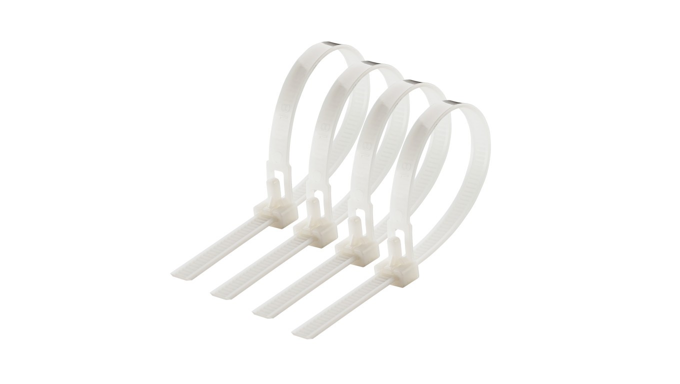 Opaska kablowa wielokrotnego użytku 8x250mm, biały (100 szt/op) (37-176)